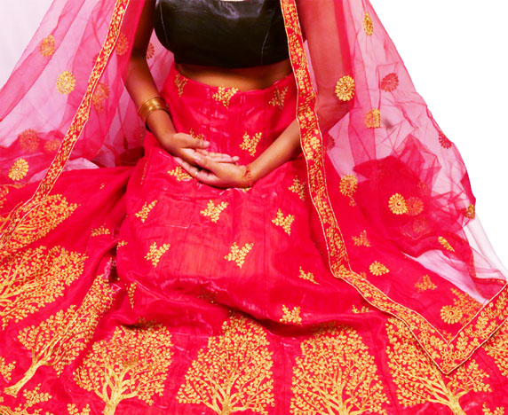 Colour: Red colour beatifully designed Lehenga with golden colour tree