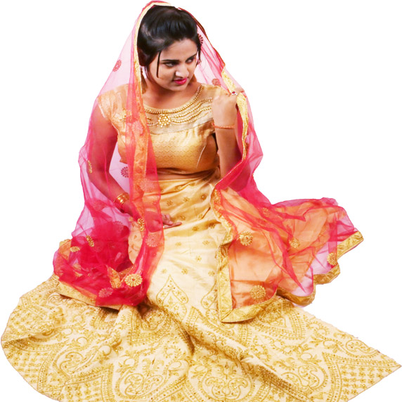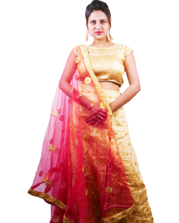Closure Type: Golden colour zari all over work embroidery lehenga